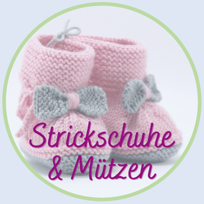 Strickschuhe und Mützen